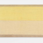 As pinturas são compostas por duas faixas de cores que ocupam, cada, uma metade da tela. O formato paisagem de alguns quadros – esse que tem a forma retangular onde a altura é menor que o comprimento – nos leva a associar os dois campos de cor às faixas do céu e da terra de uma pintura figurativa. O que vemos nas telas de Amelia Toledo, contudo, é uma investigação sobre a própria pintura, pelo uso e extroversão de seus padrões esquemáticos que se dá pela cor. O tensionamento entre tons de cores tão próximas dividindo o mesmo retângulo produz um tipo de vibração que, embora cause um efeito mais imediato à visão, mobiliza também, a um olhar mais demorado, outros sentidos.