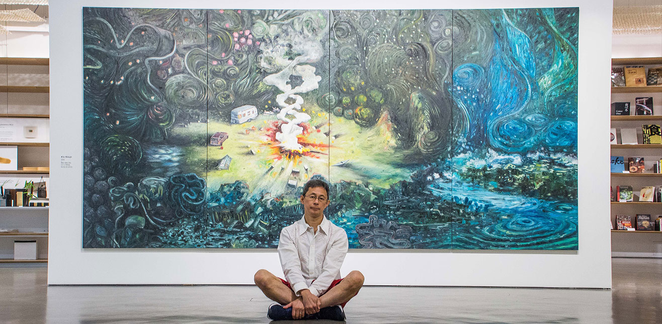 O artista Oscar Oiwa, talento multidisciplinar que assina a nova exposição “Oscar Oiwa no Paraíso – Desenhando o Efêmero”, convidou os visitantes da Japan House Avenida Paulista, São Paulo, SP, a entrar em seu mundo particular e fantástico, dividindo um pouco de sua mente e projeções pessoais por meio de um bate-papo em uma visita guiada. A atividade passou pelas telas expostas “The Dream of the Sleeping World”, de 2009, “After Midnight”, de 2010 e “Invisible Sea”, de 2010, além de adentrar na instalação “Paraíso”, feita dentro de um balão inflável em material vinílico com um desenho em 360 graus de uma paisagem projetada. A mostra encontra-se em seus últimos dias.