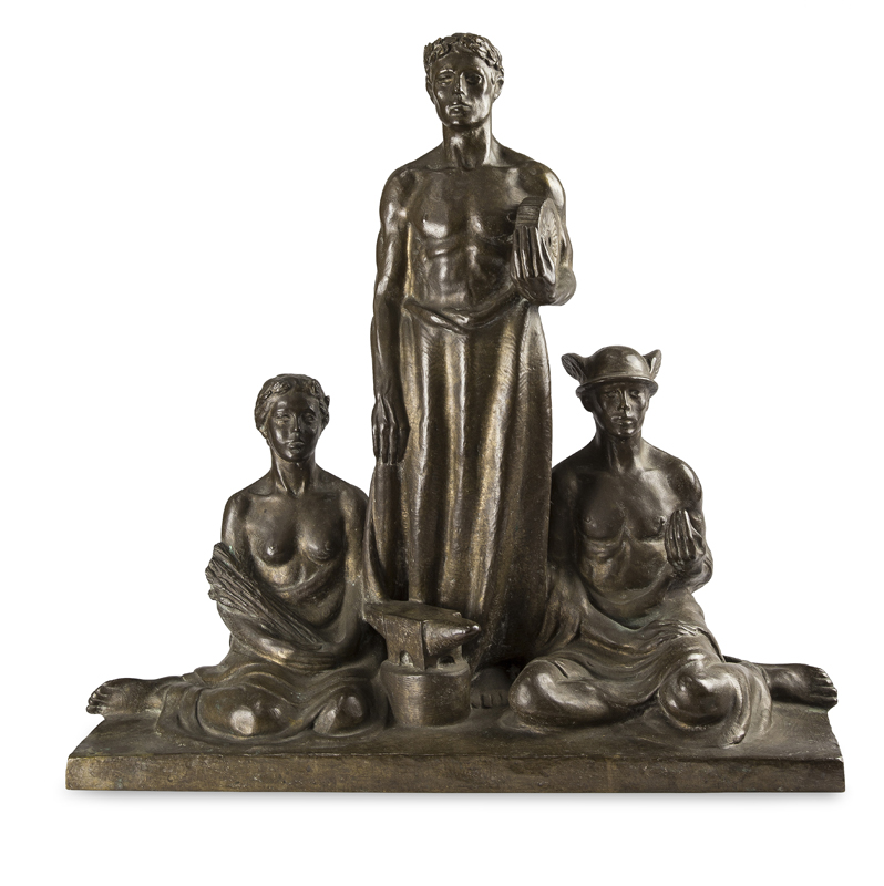 A composição também abarca 14 esculturas em ferro, pedra e madeira. No centro da sala uma escultura em ferro medindo 3,30 metros de altura chama atenção: em seu interior desce uma corrente que sustenta duas pedras envoltas em ferro (masculino) e em sua ponta superior sustenta uma forma oval em ferro rasgado com solda (feminino). No entorno da escultura central 25 pedras envoltas em ferro, número este definido a partir da somatória dos quatros dígitos do ano de 1888, serão espalhadas pelo chão representando o homem e as ferragens utilizadas no aprisionamento dos escravos.
